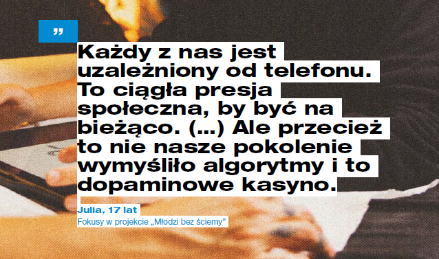 Warto zwrócić też uwagę na to, co dokładnie mówią młodzi ludzie. Są oni cytowani w raporcie. Oto kilka wybranych wypowiedzi: